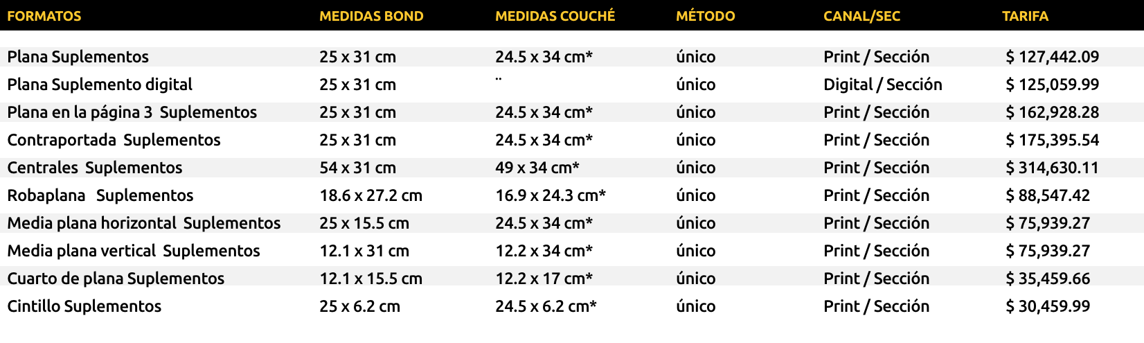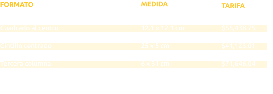 LOS ESPECIALES MEDIDAS Y TARIFAS